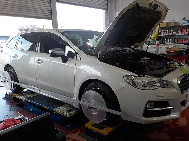 車好きな人が多いスバル車 タイヤ入替した後アライメント調整しました