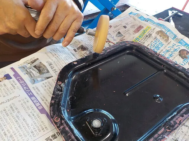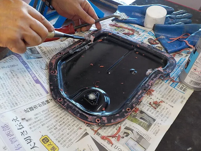 オイルパンのガスケットは液状のため前のシールをきれいに剥がす必要がありまので